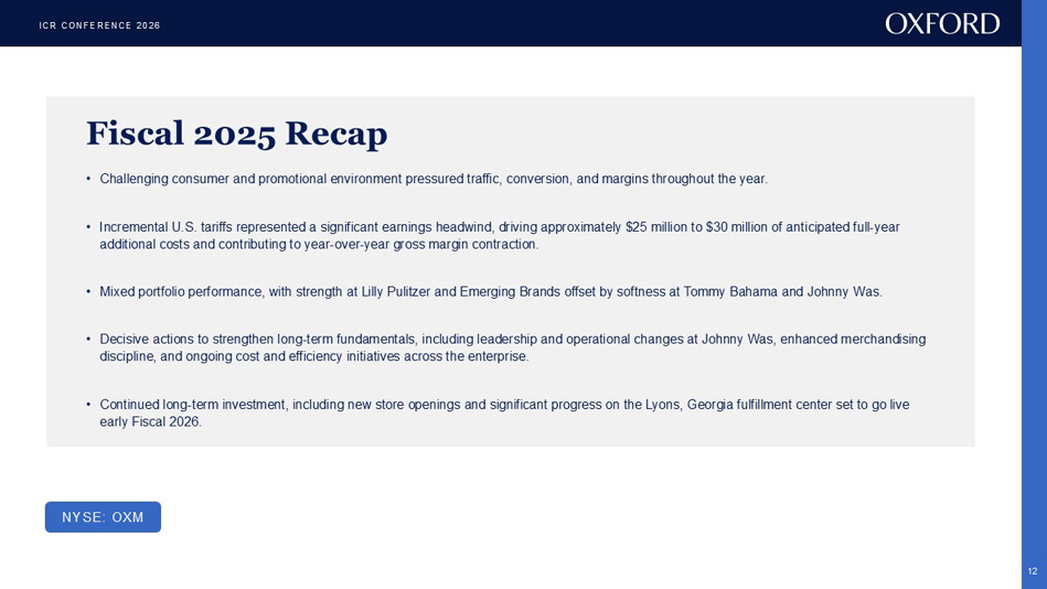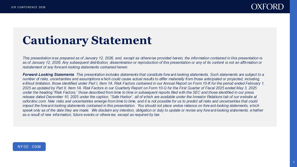NYSE: OXM ICR Conference 2026 January 12, 2026