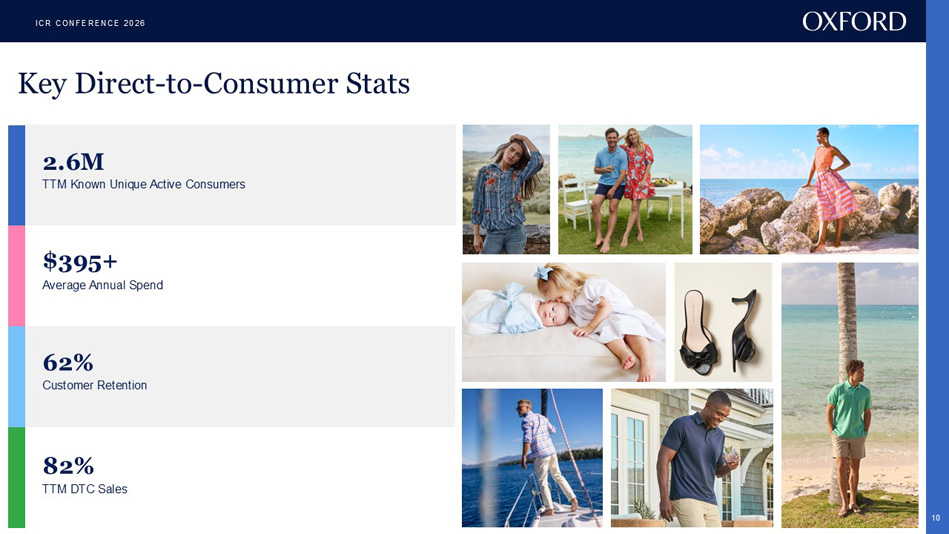 ICR CONFERENCE 2026 10 2.6M TTM Known Unique Active Consumers $395+ Average Annual Spend 62% Customer Retention 82% TTM DTC Sales Key Direct - to - Consumer Stats